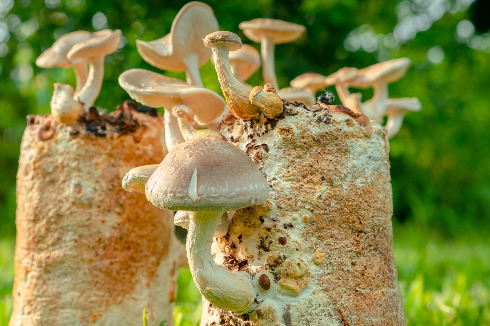 shiitake mushrooms can be cultivated on a variety of hardwood logs including oak, American beech, sugar maple and hophornbeam. Softwood should not be used to cultivate shiitake mushrooms because the resin of softwoods will oftentimes inhibit the growth of the shiitake mushroom making it impractical as a growing substrate. To produce shiitake mushrooms, 1 metre (3-foot) hardwood logs with a diameter ranging between 10–15 cm (4–6 in) are inoculated with the mycelium of the shiitake fungus. Inoculation is completed by drilling holes in hardwood logs, filling the holes with cultured shiitake mycelium or inoculum, and then sealing the filled holes with hot wax. After inoculation, the logs are placed under the closed canopy of a coniferous stand and are left to incubate for 12 to 15 months. Once incubation is complete, the logs are soaked in water for 24 hours. Seven to ten days after soaking, shiitake mushrooms will begin to fruit and can be harvested once fully ripe.